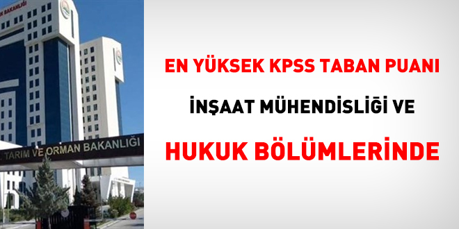 Tarım ve Orman Bakanlığının, müfettiş yardımcılığı sınavına başvuran adaylar özelinde yaptığı açıklamaya göre, en yüksek KPSS taban puanı İnşaat Mühendisliği ve Hukuk bölümlerinde oluştu. İnşaat mühendisliğinde oluşan minimum taban puan 93,7 oldu.