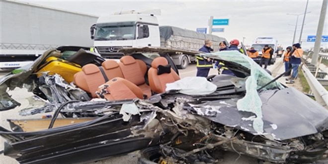 Amasya'nın Merzifon ilçesinde meydana gelen trafik kazasında, bir otomobil park halindeki TIR'a ve ardından bariyerlere çarptı. Bu kazada 2'si çocuk olmak üzere toplam 5 kişi yaralandı. Kaza, sabah saat 08.00 civarında Merzifon Galericiler Sitesi yakınlarında gerçekleşti. Mehmet B. tarafından kullanılan 34 BCZ 586 plakalı otomobil, Şakir Y. idaresindeki park halindeki 55 ANF 547 plakalı TIR'a arkadan çarptı. Çarpmanın etkisiyle otomobil kontrolden çıkarak demir bariyerlere çarptı.