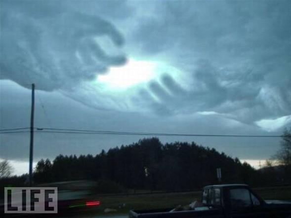 Bu çarpıcı ve ‘sahte’ fotoğraf, iki farklı resmin, San Francisco’da tatbikata katılan ABD Hava Kuvvetlerine ait helikopterle Güney Afrika açıklarında sudan yüzeye çıkan beyaz köpekbalığının birleştirilmesiyle elde edildi. 2001’de email yoluyla hızla yayılan resim, köpekbalığının Güney Afrika’daki İngiliz donanma mürettebatına saldırısı şeklinde takdim edildi.