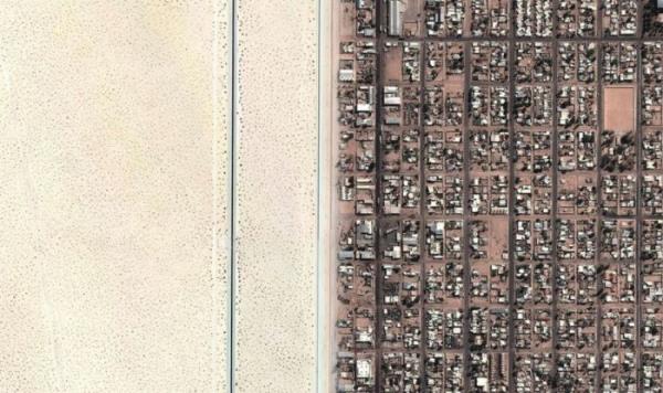 Sol taraf Amerika, Arizona, sağ taraf Meksika, Sonora.