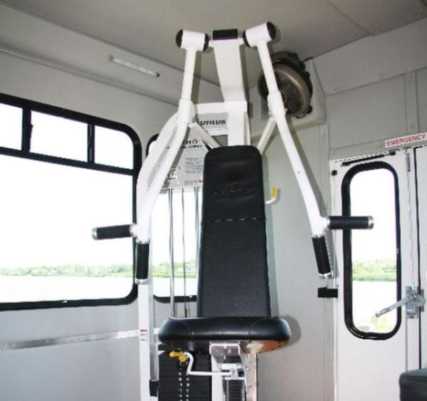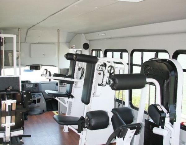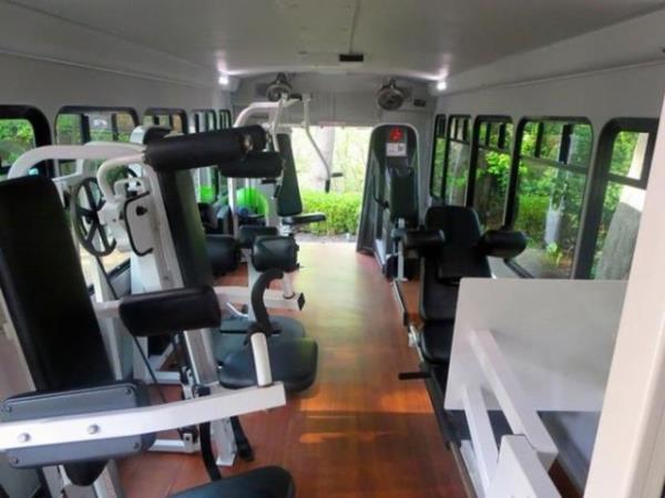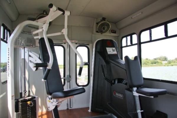 İçinde, bir spor salonunda bulunan her aletin yer aldığı bu otobüs, farklıyla görenleri şaşırtıyor.