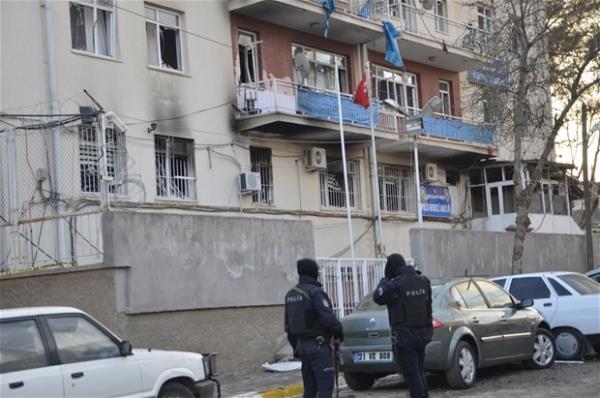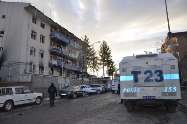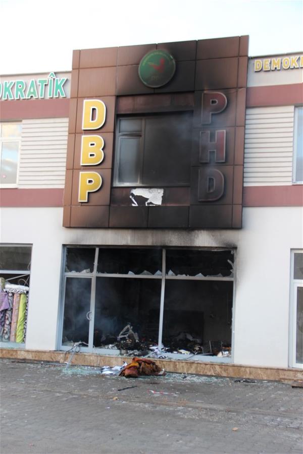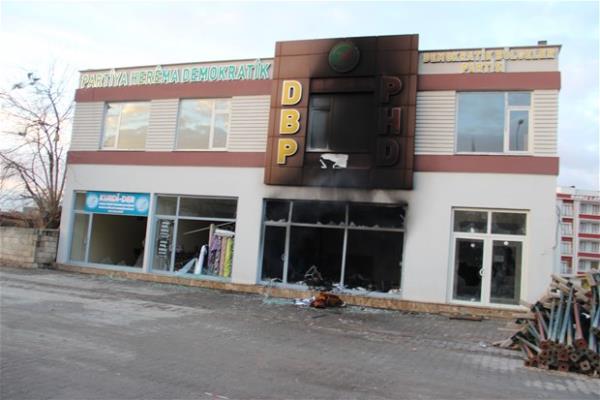 İlçede, dün gece bombalı saldırının ardından bir süre güvenlik güçleri ile çatışan teröristlerin kaçarken DBP binasını da ateşe verdiği görüldü. Binanın büyük bir bölümü yandı.