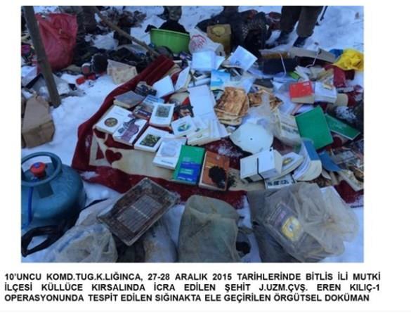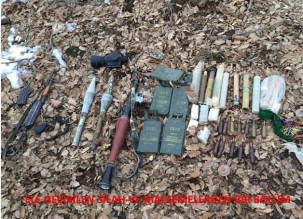Uludere'de yapılan operasyonda, bir makineli tüfek, üç kalaşnikof piyade tüfeği, iki keskin nişancı tüfeği dürbünü, 42 keskin nişancı tüfeği şarjörü, 615 keskin nişancı tüfeği fişeği, 240 makineli tüfek fişeği ve beş anti personel mayını ele geçirildi. Van Edremit kırsalında, iki kalaşnikof piyade tüfeği, beş piyade tüfeği şarjörü, 113 fişek ile iki el yapımı patlayıcı ele geçirildi.