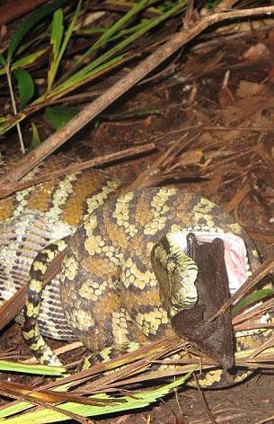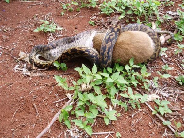 Avını boğarak öldüren pitonun bu bebek kanguruyu sindirmesi yaklaşık 7 gününü alacak...