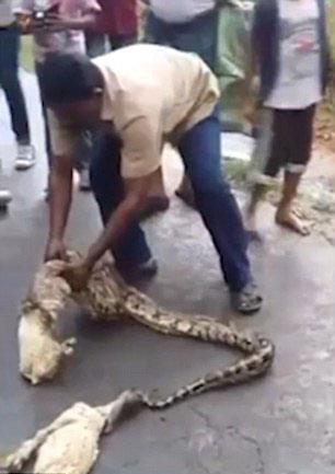 Çılgına dönen çiftçi keçileri pitonun midesinden elleriyle çıkardı.