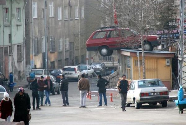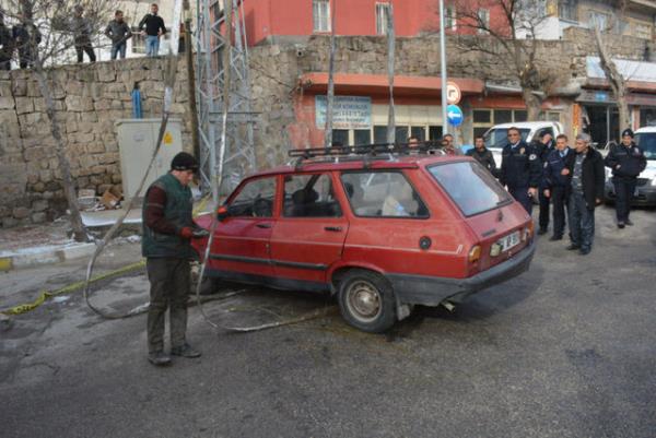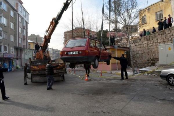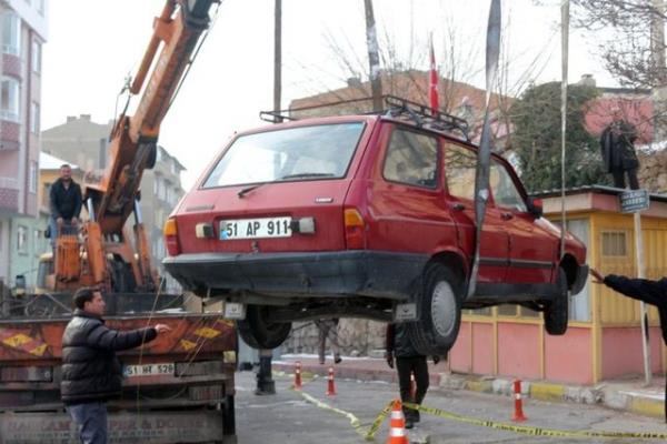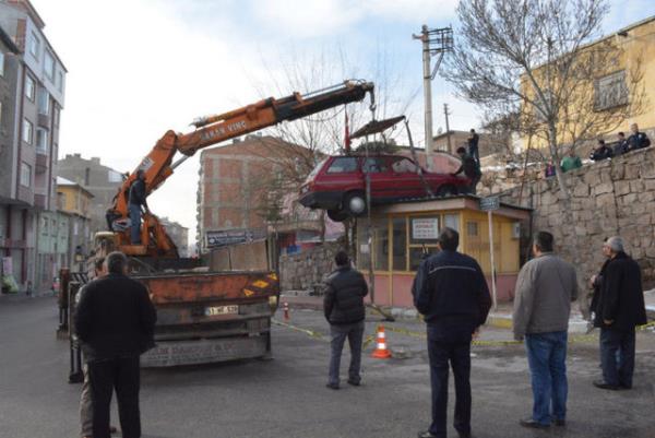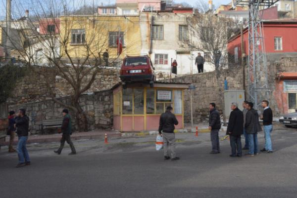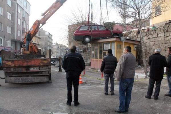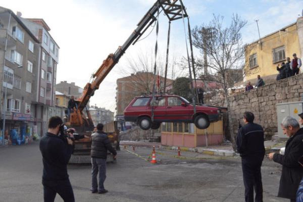 Otomobilin düştüğünü gören mahalle sakinleri hemen sahibine ve polis ekiplerine bilgi verdi.