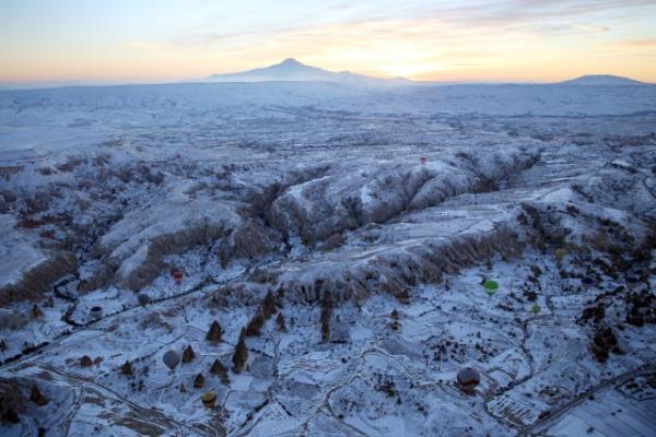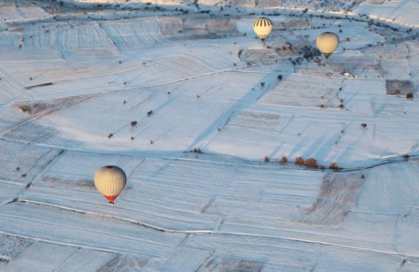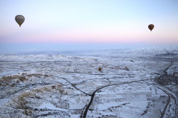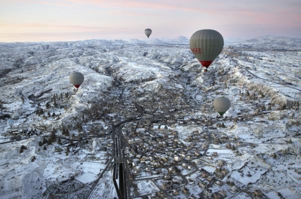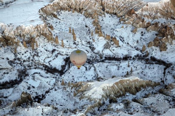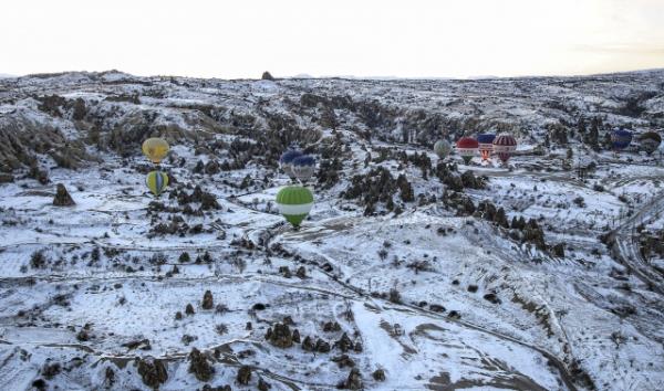 Kapadokya, kar yağışı sonrası ayrı güzelliğe büründü.