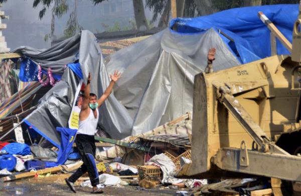 Nahda Meydanı'ndaki müdahale sırasında çıkan yangında bazı protestocular yanarak can verdi.