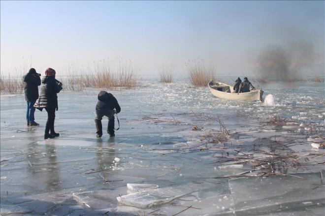 Buz Tutan Göl Kıyılarını Kahvehaneye Çevirdiler