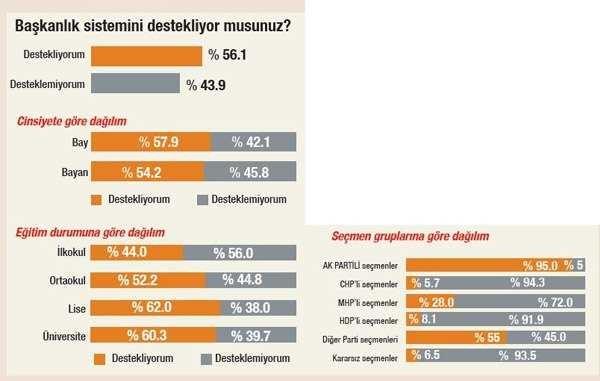 Türkiye nüfusunun yüzde 78'ini kapsayan araştırmada, başkanlık sistemine destek yüzde 56.1 çıktı.
