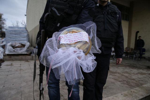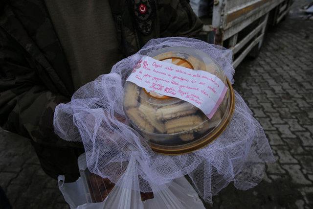 Yiyeceklerin bulunduğu paketlere çocukların iliştirdiği mektuplar, ilçenin teröristlerden temizlenmesi için canla başla görev yapan güvenlik güçlerini duygulandırdı.