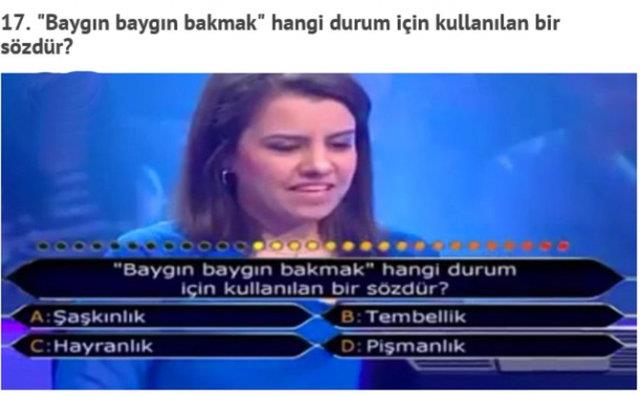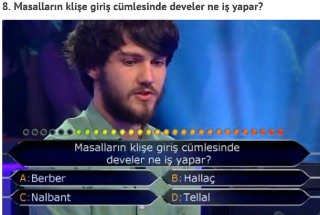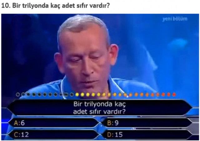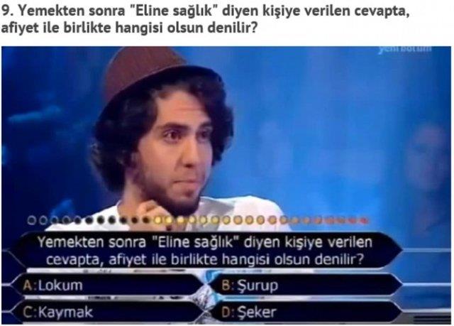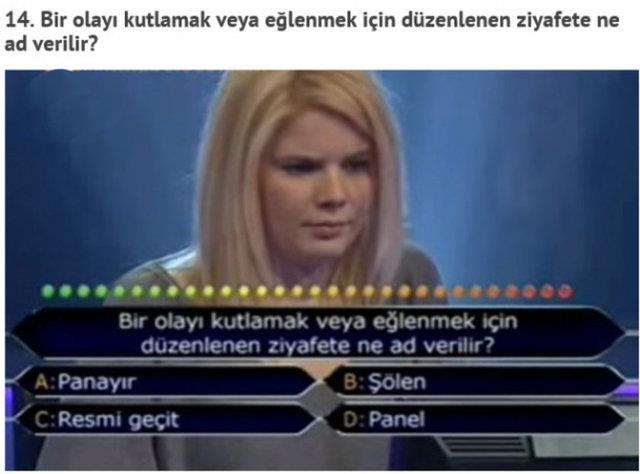 "Kim Milyoner Olmak İster" adlı yarışmada, yarışmacıların yanlış cevap verdiği birbirinden basit sorular