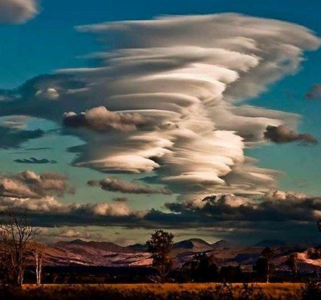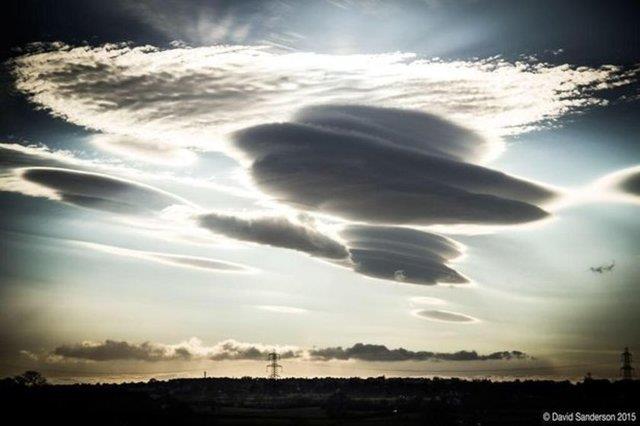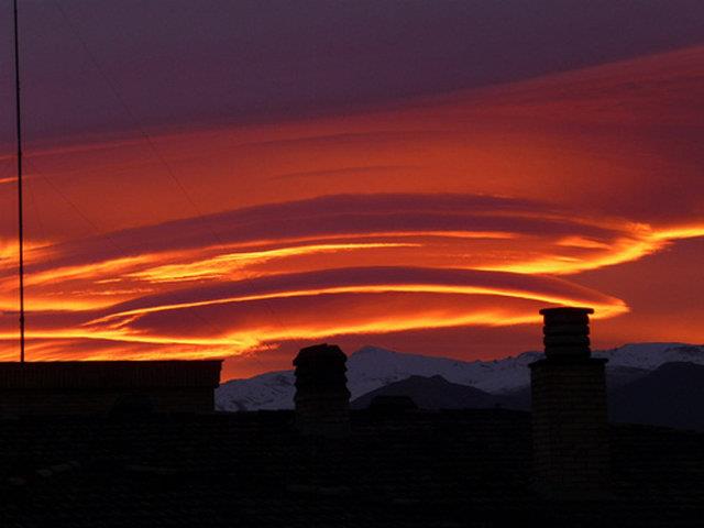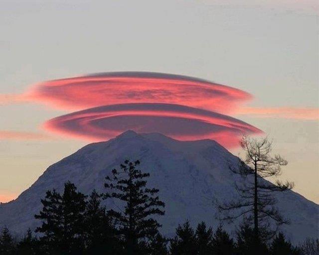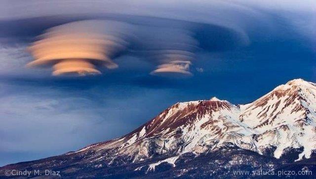 Lenticular bulutlar dağların tepelerinden aşağı doğru inen hava tarafından bu biçimde şekilleniyor.