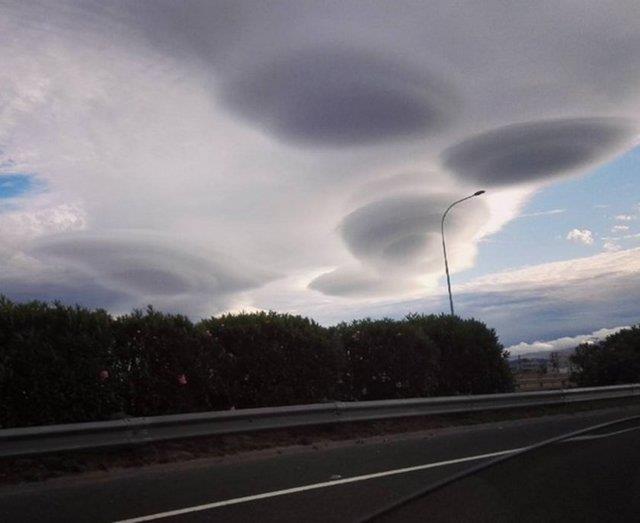 Uzmanlar ise bu olayın sıradan bir doğa olayı olduğunu ve bu şekildeki bulutlara "lenticular" bulutlar dendiğini belirtiyor.