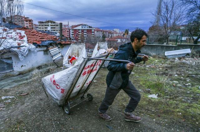 Ankara'nın Sokullu Mahallesi'nde bir gecekonduda ailesiyle birlikte yaşayan Ramazan Gezer (37), sokaklara bırakılan karton ve plastik malzemeleri toplayıp ailesinin geçimini sağlıyor.