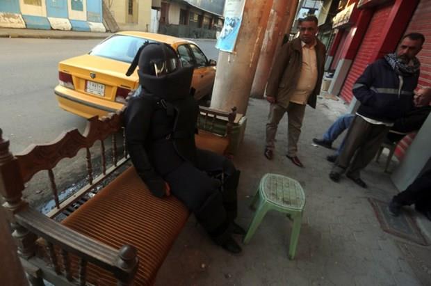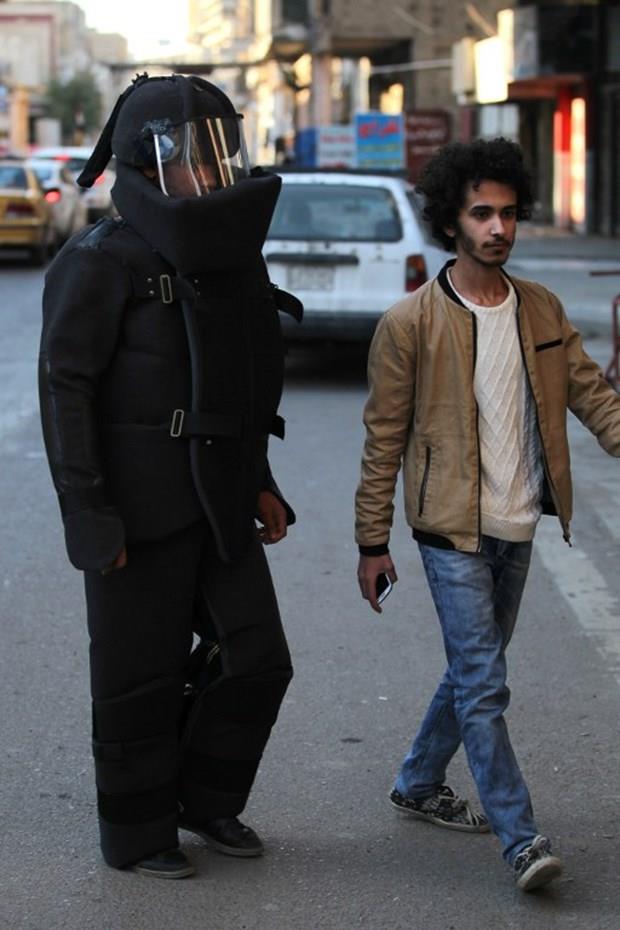 Bomba imha ekiplerinin giydiği bir üniforma ile çay içen bir adam... Ancak bir terslik var. Ortada imha edilecek bir bomba yok. Bağdatlılar bir süredir ilginç bir protestoya imza atan bu sanatçıyı konuşuyor.