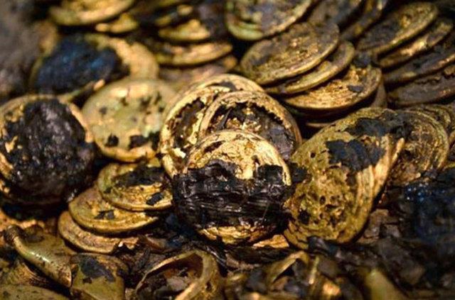Tamamen altın paralar ve eşyalardan oluşan hazine içinde sikkeler, külçe altınlar, yeşim kolyeler ve som altın eşyalar bulunuyor.