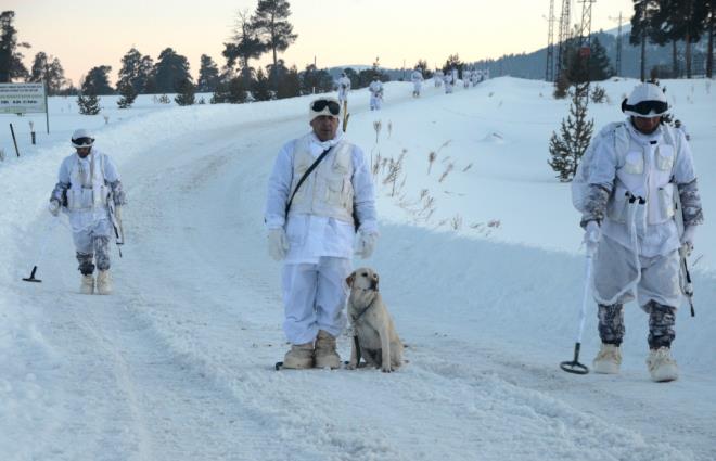 Karlı zeminde gerçekleştirilen zorlu intikalde tek bir iz oluşturarak ilerleyen birlikler, kar kamuflajlarıya doğayı kendilerine siper ederek, en zor şartlarda harekat gerçekleştirebilme becerilerini ortaya koydu.
