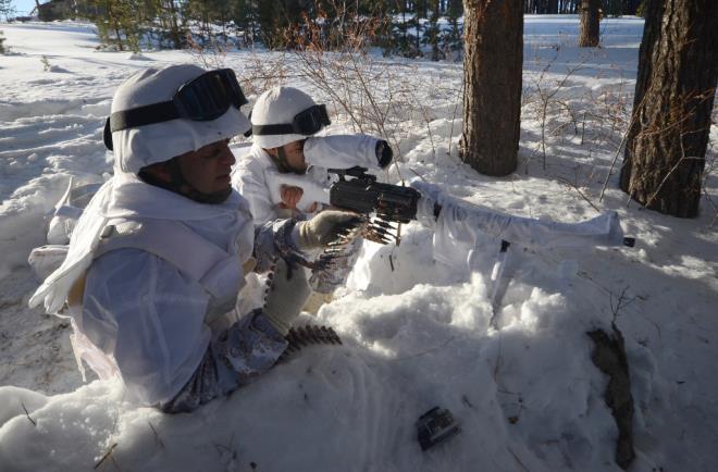 Karla kaplı arazide mevzilenen komandolar, belirlenen hedefleri otomatik silahlarla ateş altına aldı.