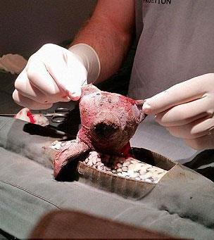 Veterinerler karnından bir şişkinlik fark ettikleri pitonun karnını açınca neye uğradıklarını şaşırdılar...