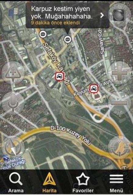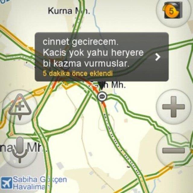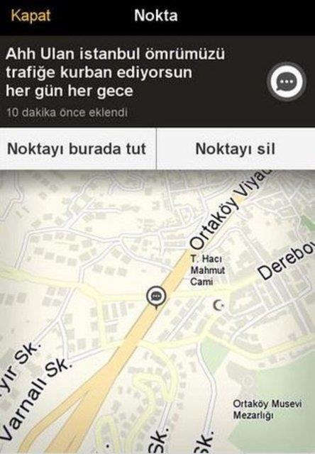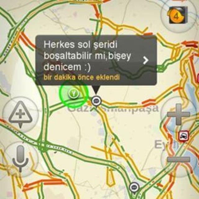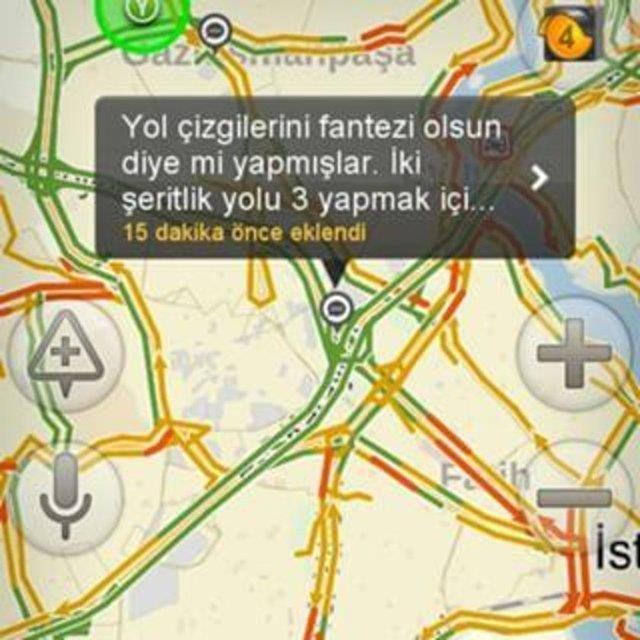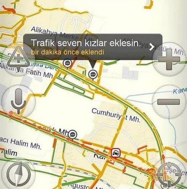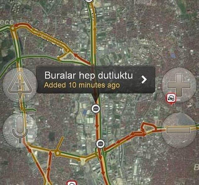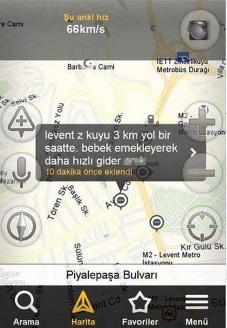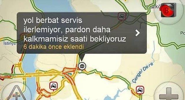 İstanbul gibi trafikle yaşayan bir şehirde sürücülerin elinden düşmeyen Navigasyon uygulamasında trafik durumuyla ilgili bırakılan yorumlar kimi zaman çok komik olabiliyor...