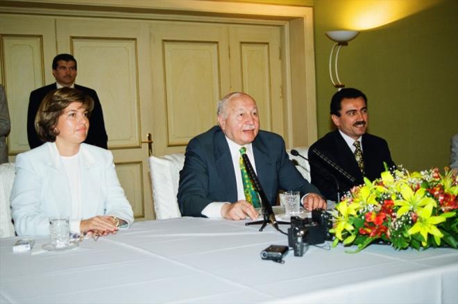 Yazıcıoğlu, 30 Mayıs 1999'da Büyük Birlik Partisi (BBP) 1. Küçük Kurultayı'nda partilileri selamlarken görülüyor..