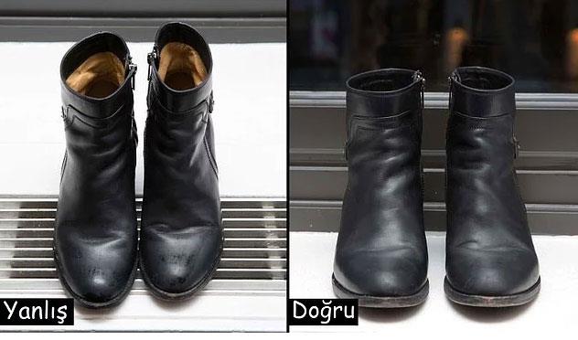 Sirke ve su karışımına, kuru bir bezi batırarak ayakkabılarınızı temizleyebilirsiniz.
