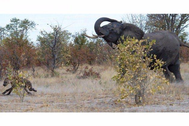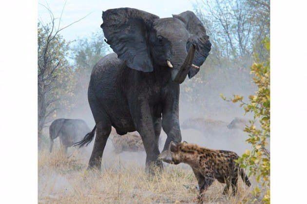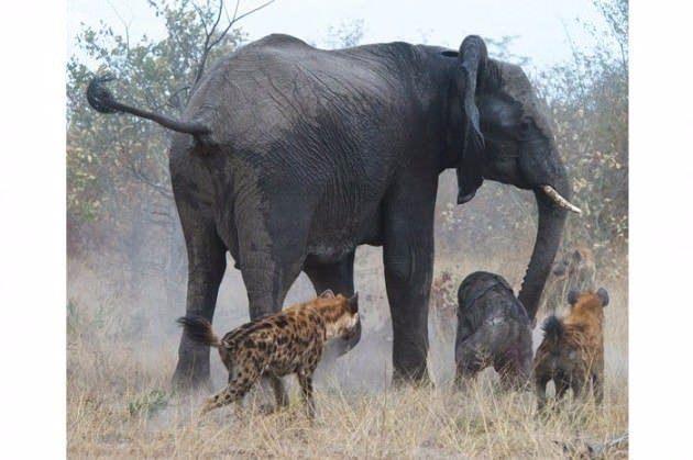Botswana'da çekilen bu fotoğraflar, tam 18 sırtlanın saldırısına uğrayan yavrusunu kurtarmaya çalışan anne filin dramatik mücadelesini yansıtıyor.
