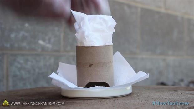 En alttaki tuvalet kağıdının üzerine bir yemek kaşığı su dökün ve koşarak uzaklaşın.