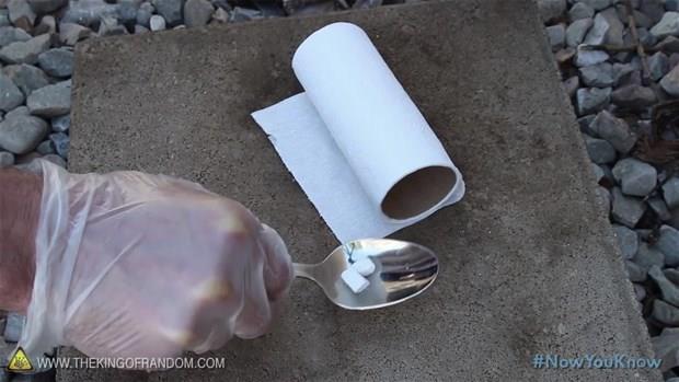 Bir adet tuvalet kağıdı rulosu, bir parça su ve sodyum parçaları ile ateş yakabilirsiniz.