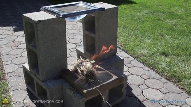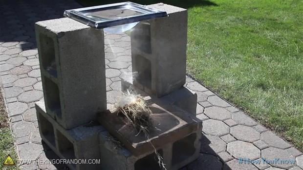 Oluşan likit merceğin güneşle odak olacak bir noktaya yansıdığı yere kuru ot ve tutuşacak ağaç parçaları ekleyin.