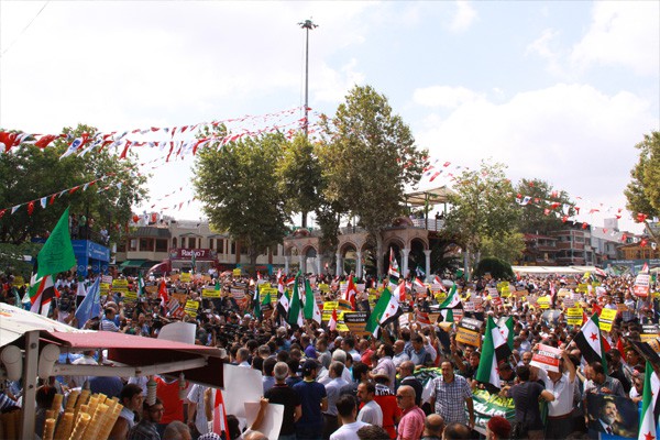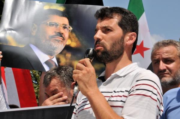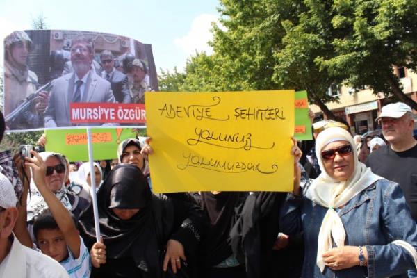 Yürüyüş sırasında "Katil Sisi, Mücahit Mursi", "Katiller bir gün hesap verecek?, "Müslüman uyuma kardeşine sahip çık", "İhvan'a selam direnişe devam" sloganları atıldı.