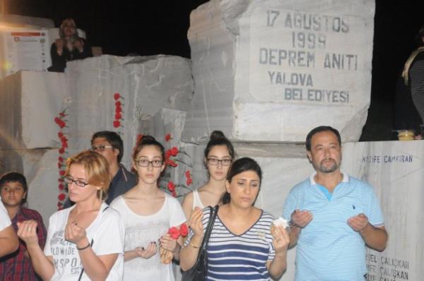 Yalova'da 2 bin 504 kişinin yaşamını yitirdiği 17 Ağustos 1999 Marmara Depremi'nin 14'üncü yıldönümü nedeniyle Deprem Anıtı'nda anma töreni düzenlendi.