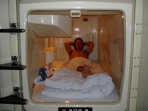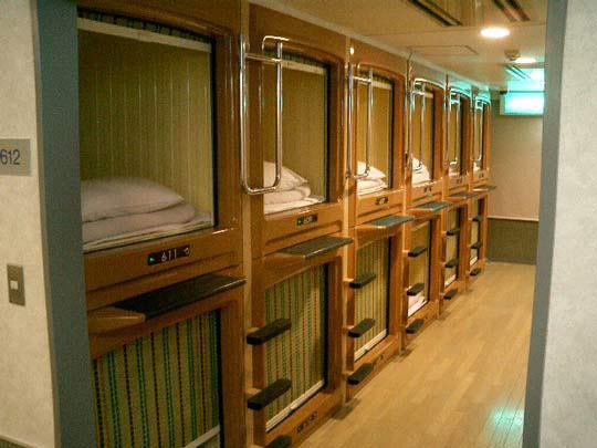Japonya'ya özgü kapsül oteller. Adından da anlaşılacağı gibi size bir odanın değil, sadece için de uyuyabileceğiniz birer kapsülün sunulduğu otelcilik anlayışı.