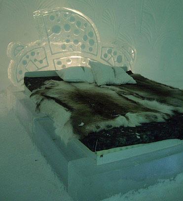 Otelin yataklarında oturduğunuz iskemlelerden tutun da, içkinizi içeceğiniz kadehlere kadar kadar her şeyi buzdan..
