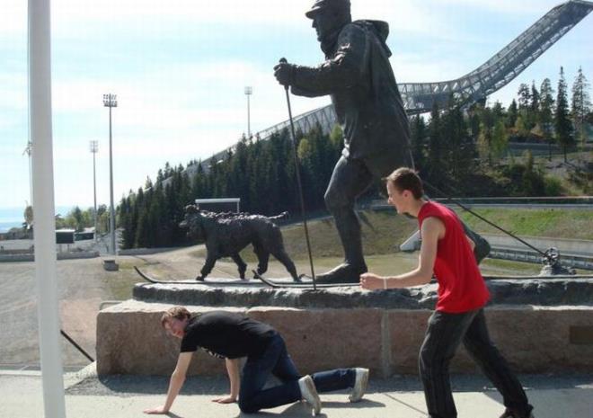 İşte birbirinden ilginç ve komik heykelli fotoğraf çekimleri...