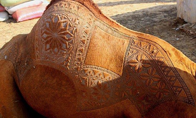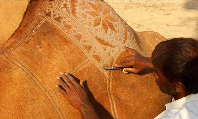 Hal böyle olunca develer satıcıların gözlerine yeterince “süslü” gözükmüyor olmalı ki deve berberleri hayvanların tüylerini farklı şekillerde keserek desenler yaratıyor.