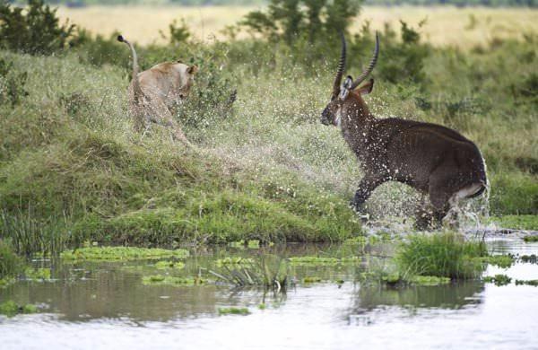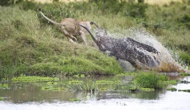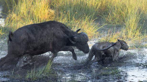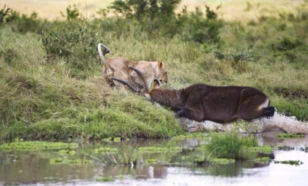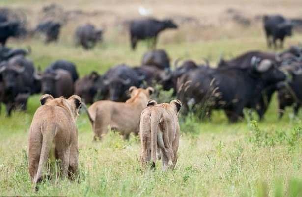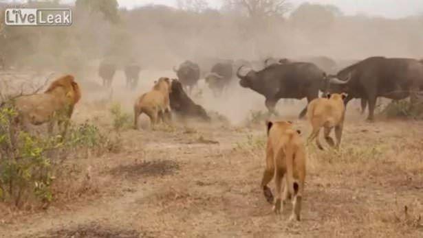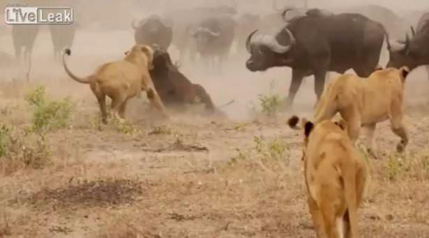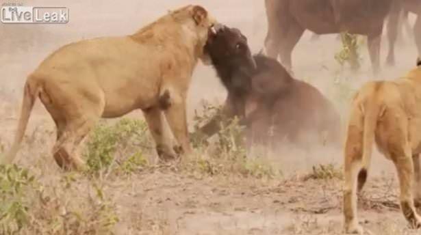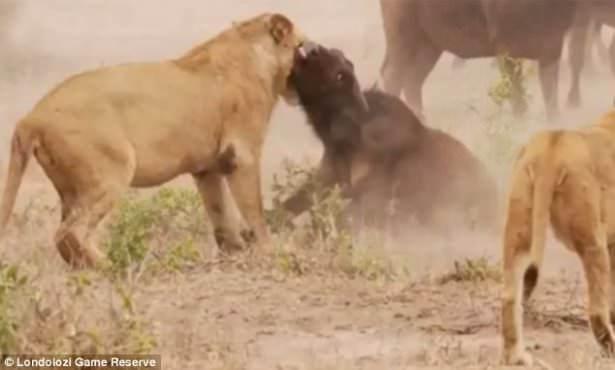 Saatler süren bu ölüm kalım savaşında başka bir bufalonun yardıma gelmesiyle aslanlar geri çekildi.