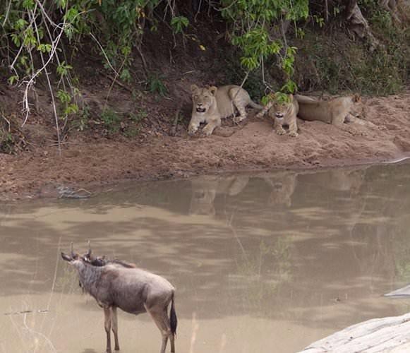 Aslanlar yavru bufaloyu yakalamak için aniden saldırdılar.