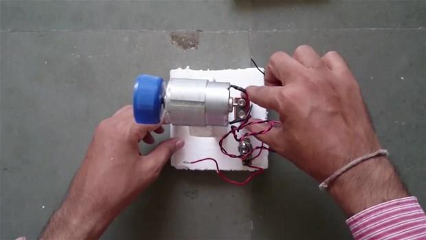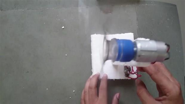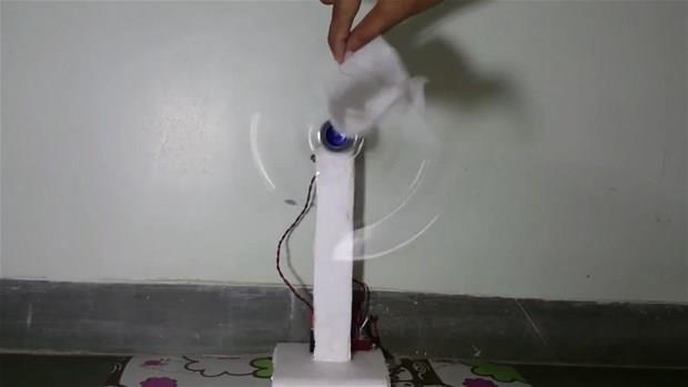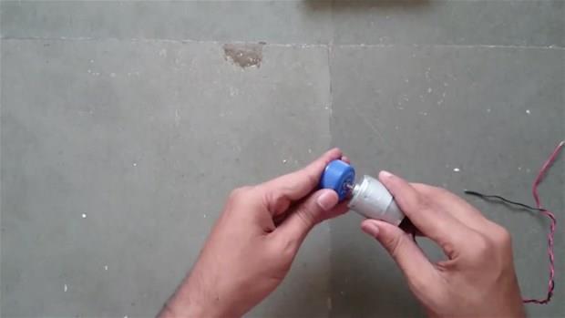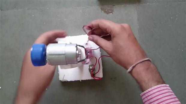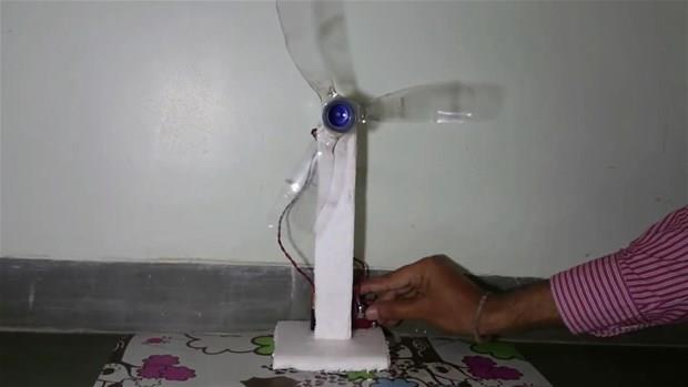 Plastik kola şişesi, oyuncak araba motoru ve pille vantilatörü elde etti.