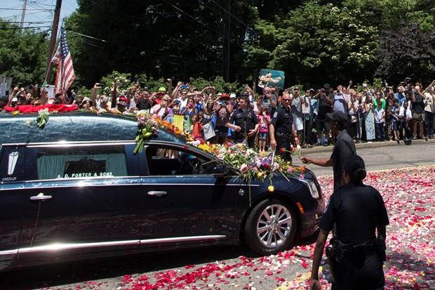 Ali'nin naaşı, cenaze evinden alınarak kortej eşliğinde yola çıkarıldı. Cave Hill Mezarlığı'na kadar yaklaşık 30 kilometre süren yolculukta ünlü sporcunun naaşı, çocukluğunun geçtiği Grand Sokağı'ndaki evi, boksu öğrendiği spor salonu ve adına kurulan müze ile ismine taşıyan caddenin de aralarında bulunduğu güzergahtan geçti.