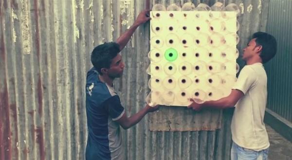 Boş plastik içecek şişeleriyle herkesin biraz uğraşarak üretebileceği havalandırma panelleri Bangladeş’in tenekeden barakalarına monte edilerek içerideki hava sıcaklığını 5 dereceye kadar düşürebiliyor.