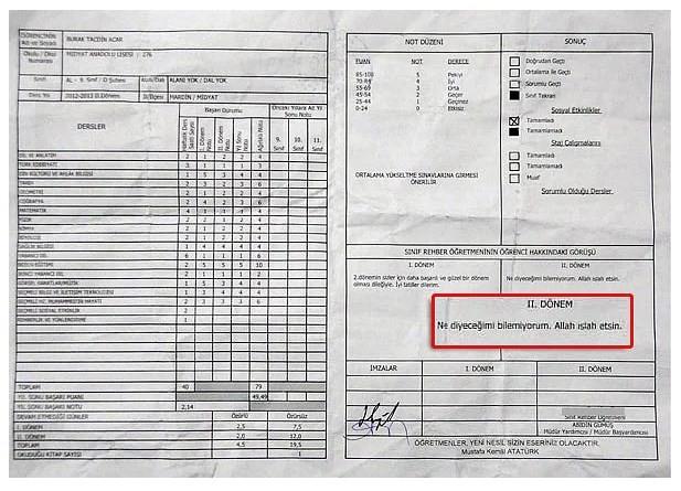 En Komik Öğretmen Karne Notları