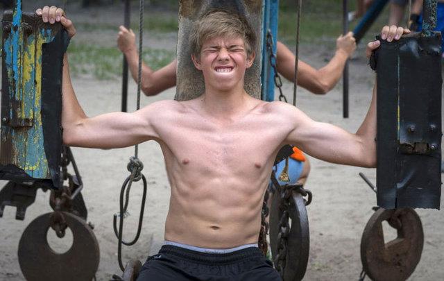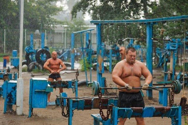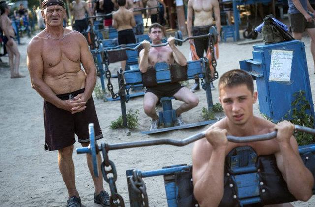 Yaklaşık 10 km kare alana kurulmuş olan spor salonunda her gün onlarca insan formda kalmak için Sovyet döneminden kalma bu metal aletleri kullanıyor.