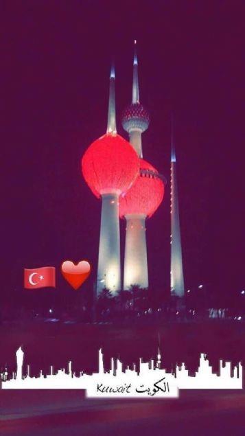 Kuveyt'in başkentteki Kuveyt Kuleleri, İstanbul Atatürk Havalimanı'ndaki terör saldırısı sonrası Türk bayrağının renkleriyle ışıklandırıldı.
