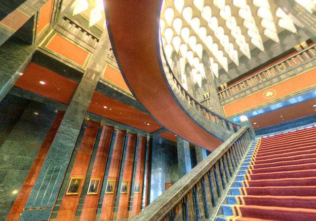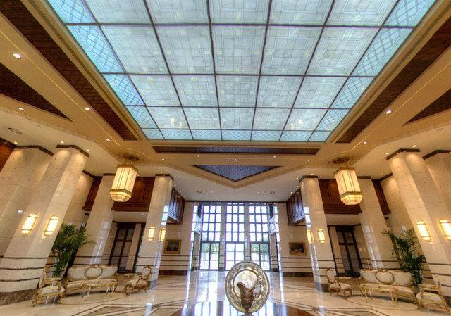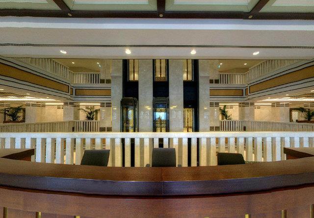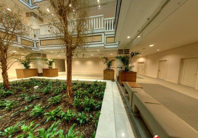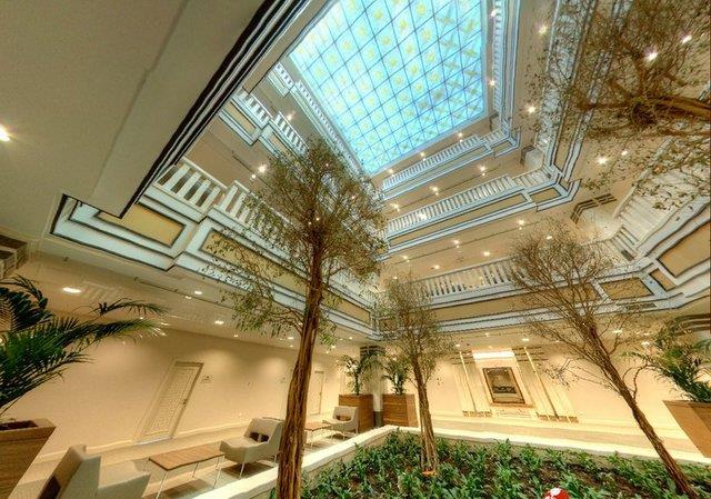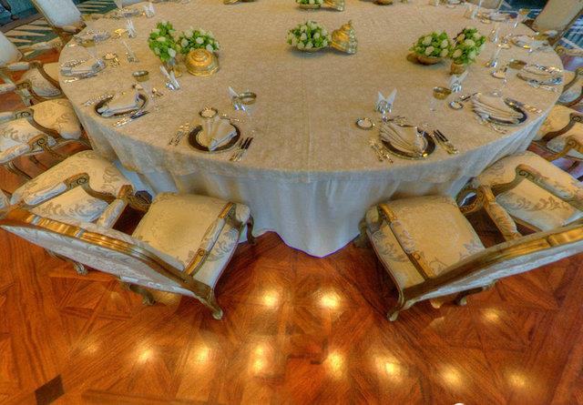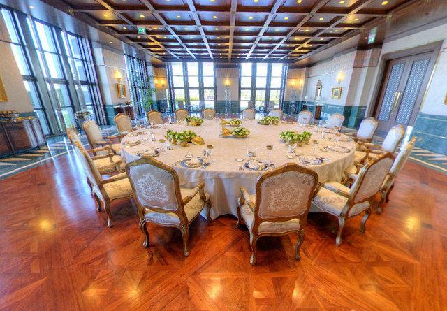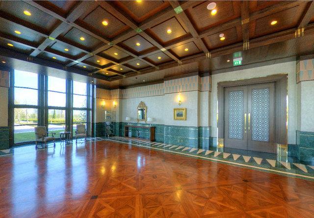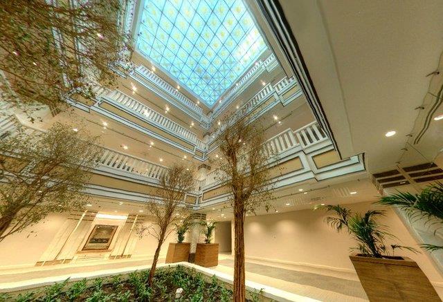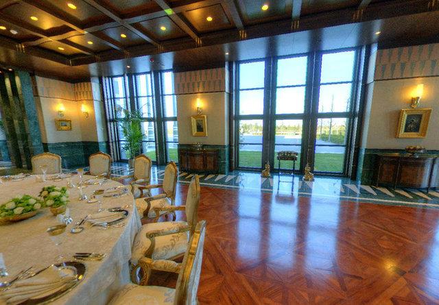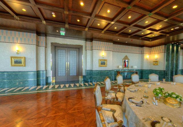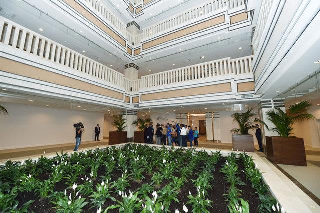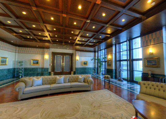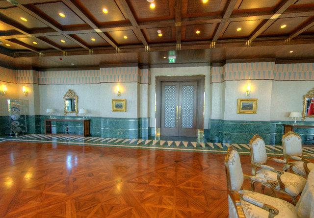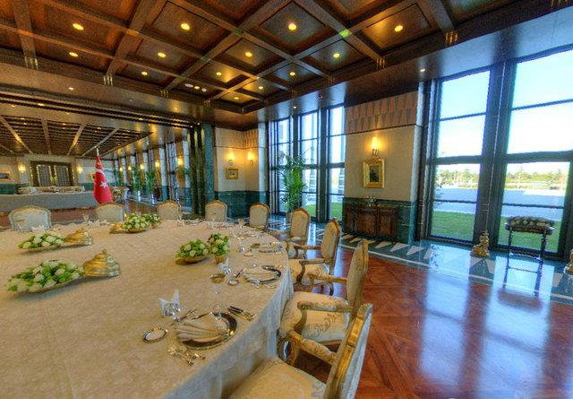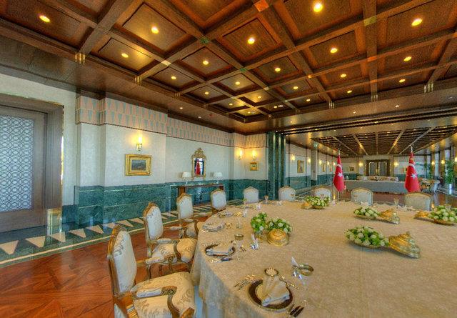 Ana binadaki fikus benjamin türü ağaçlarla dikkat çeken 2 bin kişi kapasiteli ve bin 257 metrekarelik fuaye kokteyl alanının "Kış Bahçesi" olarak isimlendirildiği bildirilen rehberde, Erdoğan'ın makam odasının fotoğraflarına da yer verildi.