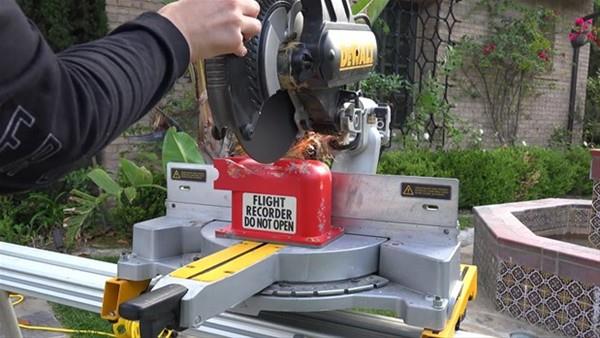 Fenomen baba oğul buldukları kara kutuyu elektrikli kesici ile kesmeye başlıyorlar.