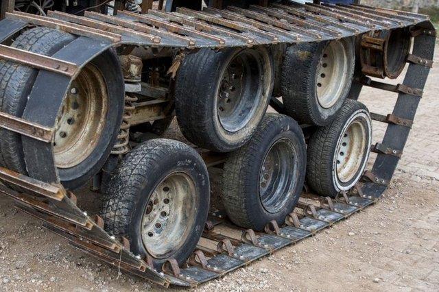 YURDUM İNSANININ SON İCADI 'TANK' Konya'da bir işçi, tamamı hurda parçalardan oluşan ve görünümüyle tankı anımsatan 10 kişi kapasiteli paletli araç yaptı.