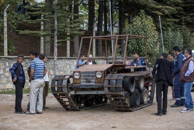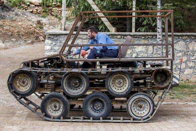 Yerli otomobil üretiminin konuşulduğu bugünlerde, elektrik dağıtım şirketinde çalışan Özgür Balcı (34), bölgede geçen çetin kış koşullarında ulaşımı sağlaması için arazi taşıtı tasarladı.