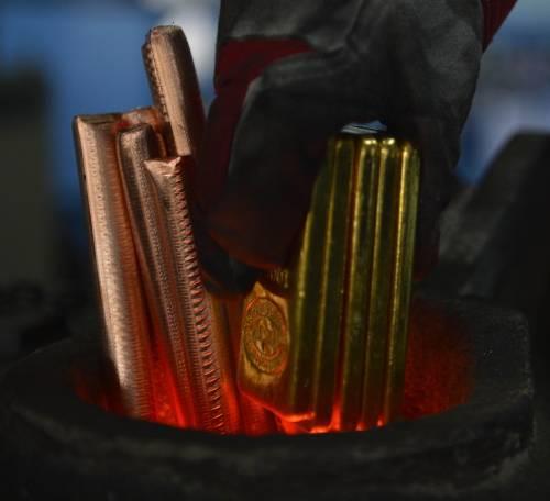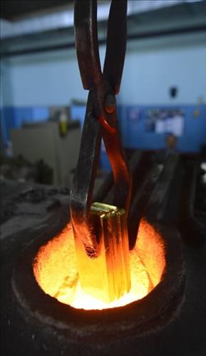 Cumhuriyet altını üretimi bir çok aşamadan geçerken ilk önce "Döküm"de 24 ayar külçe altın belli oranda saf bakırla 1.250 derecede eritilerek 8 santimetre eninde 0,8 santimetre kalınlığında yaklaşık 25 metre uzunluğunda ve 270 kilogram ağırlığında rulo haline getiriliyor.